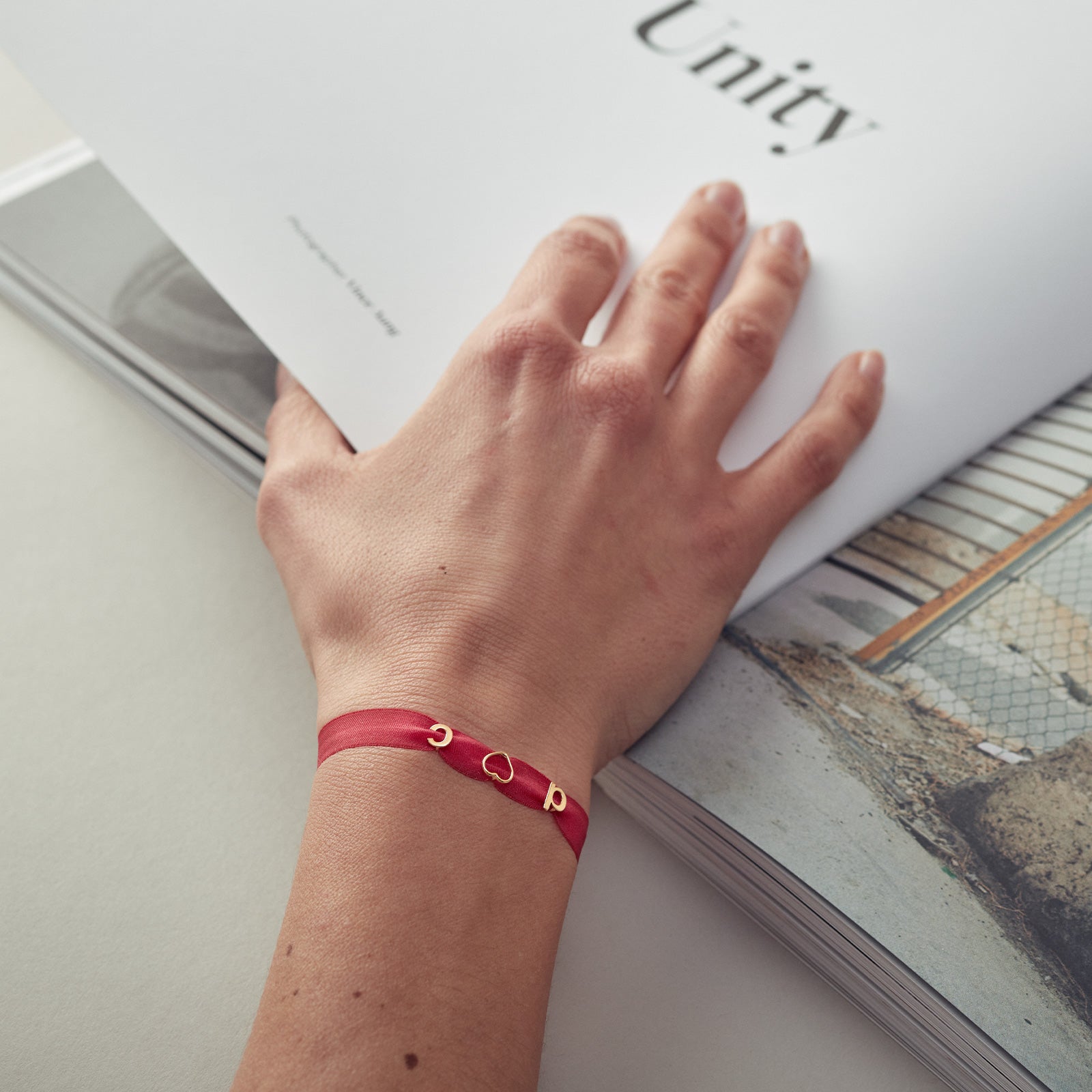 Un cuore che batte. Una barchetta all’orizzonte. Due romantiche iniziali. Il tuo numero portafortuna. I bracciali della collezione Talks concentrano emozioni spontanee e genuine in piccoli simboli da portare sempre con sé, moderni amuleti realizzati a mano in oro 9 carati da esperti artigiani italiani e allacciati al polso da un nastro morbido e colorato. Chiuderli è semplicissimo: basterà far scorrere le due estremità del nastro attraverso l’apposita fibbietta fino alla larghezza desiderata.
