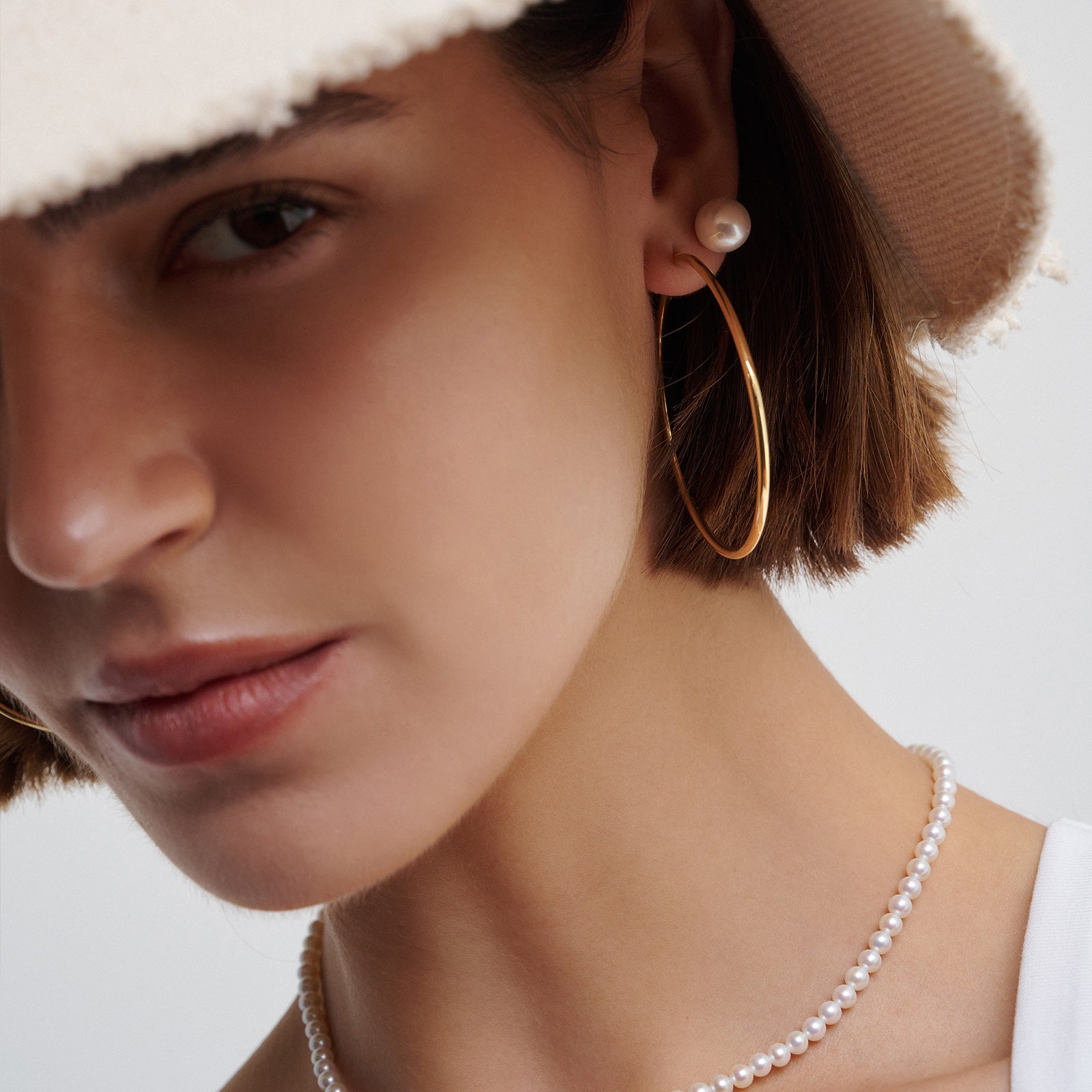 Perle, elegantissime, abitano questo design contemporaneo: inaspettato, sorprendente, chic. Anche “la chiusura” diventa bellezza. Una raffinatezza molto glam.