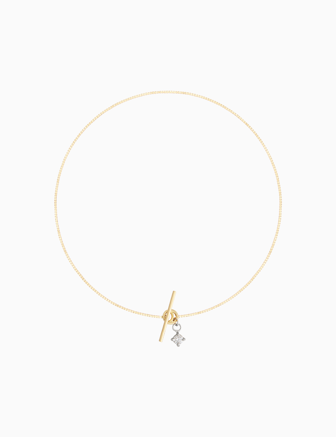 18kt yellow gold Venetian chain bracelet with toggle clasp and 0.05ct white diamond. The bracelet length is 17.5cm. Available in 18kt yellow gold.