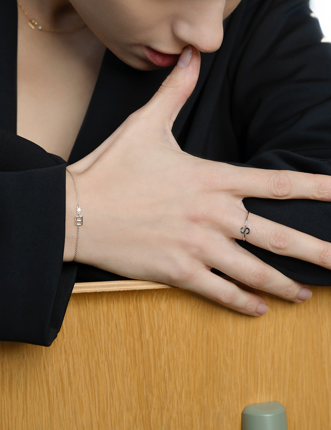 Anello della collezione Alphabet in oro bianco 18 carati e lettera. Disponibile in oro bianco e personalizzabile con lettera dell’alfabeto a scelta.
