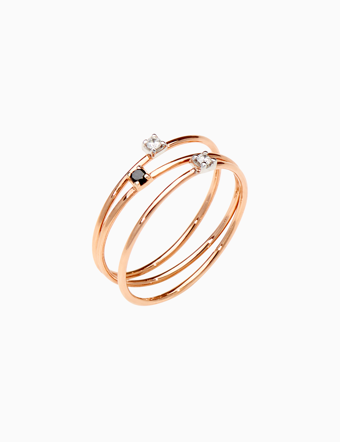 Anello a tre file della collezione Black&White in oro 18kt e diamanti bianchi (tot ct. 0,05) e neri (tot ct. 0,03). Disponibile in oro giallo, rosa, e bianco.