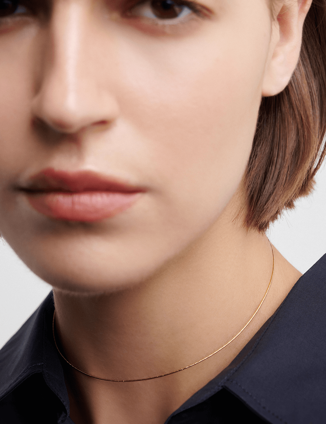 Girocollo semi-rigido della collezione Sparks con filo in oro 18kt finemente diamantato. Il girocollo è dotato di sistema sliding per poterlo aprire e chiudere comodamente. Disponibile in oro giallo. Il diametro del girocollo chiuso è 10,5 cm.
