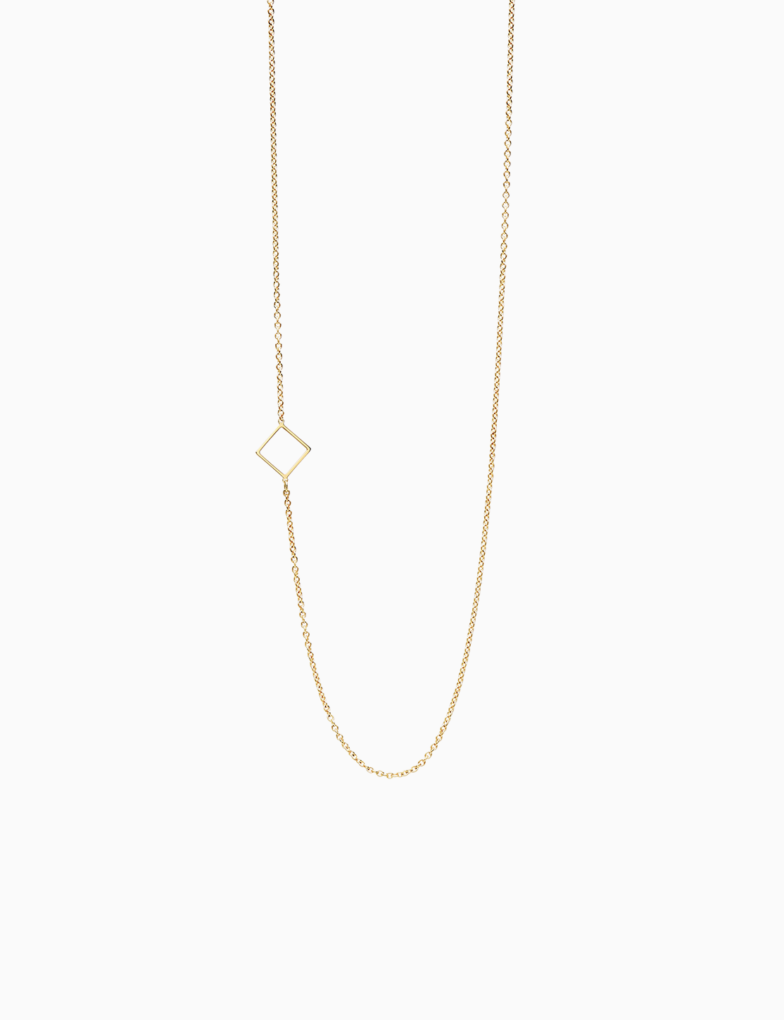 Collana in oro 18 carati con sagoma a forma di piccolo rombo inserito sulla catena in posizione leggermente laterale.