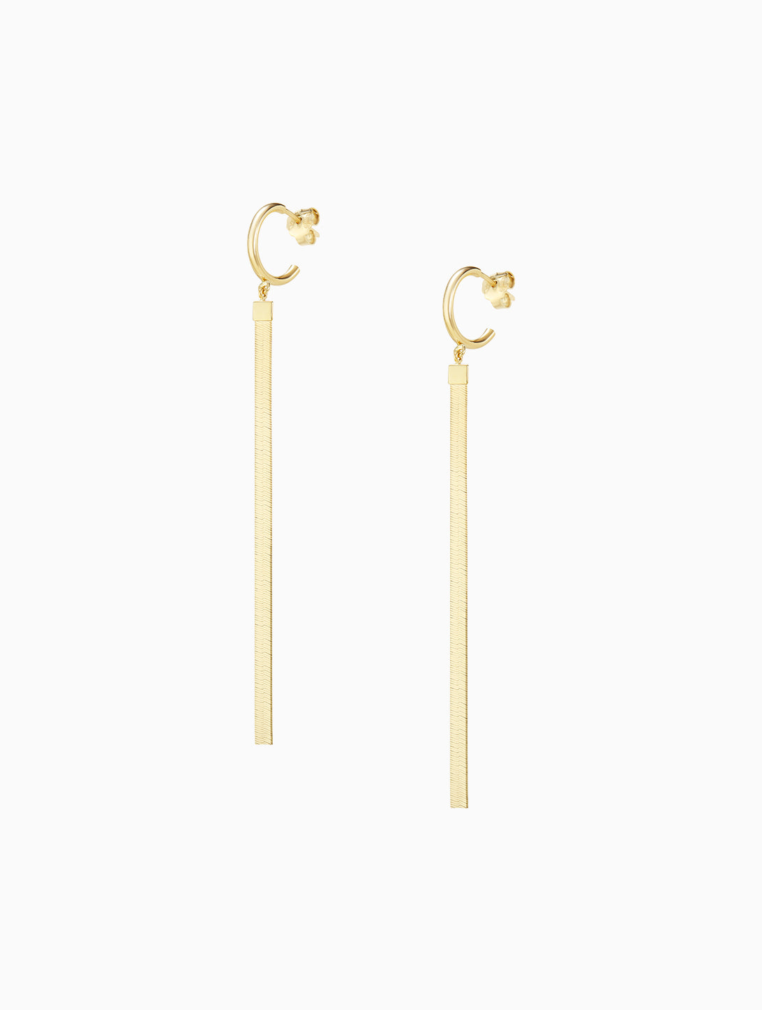 Orecchini con catena herringbone lucida della collezione Storytelling in oro 9kt. Gli orecchini sono dotati di chiusura con piccola creola, perno e farfalla (lunghezza totale 8 cm circa). Disponibili in oro giallo.