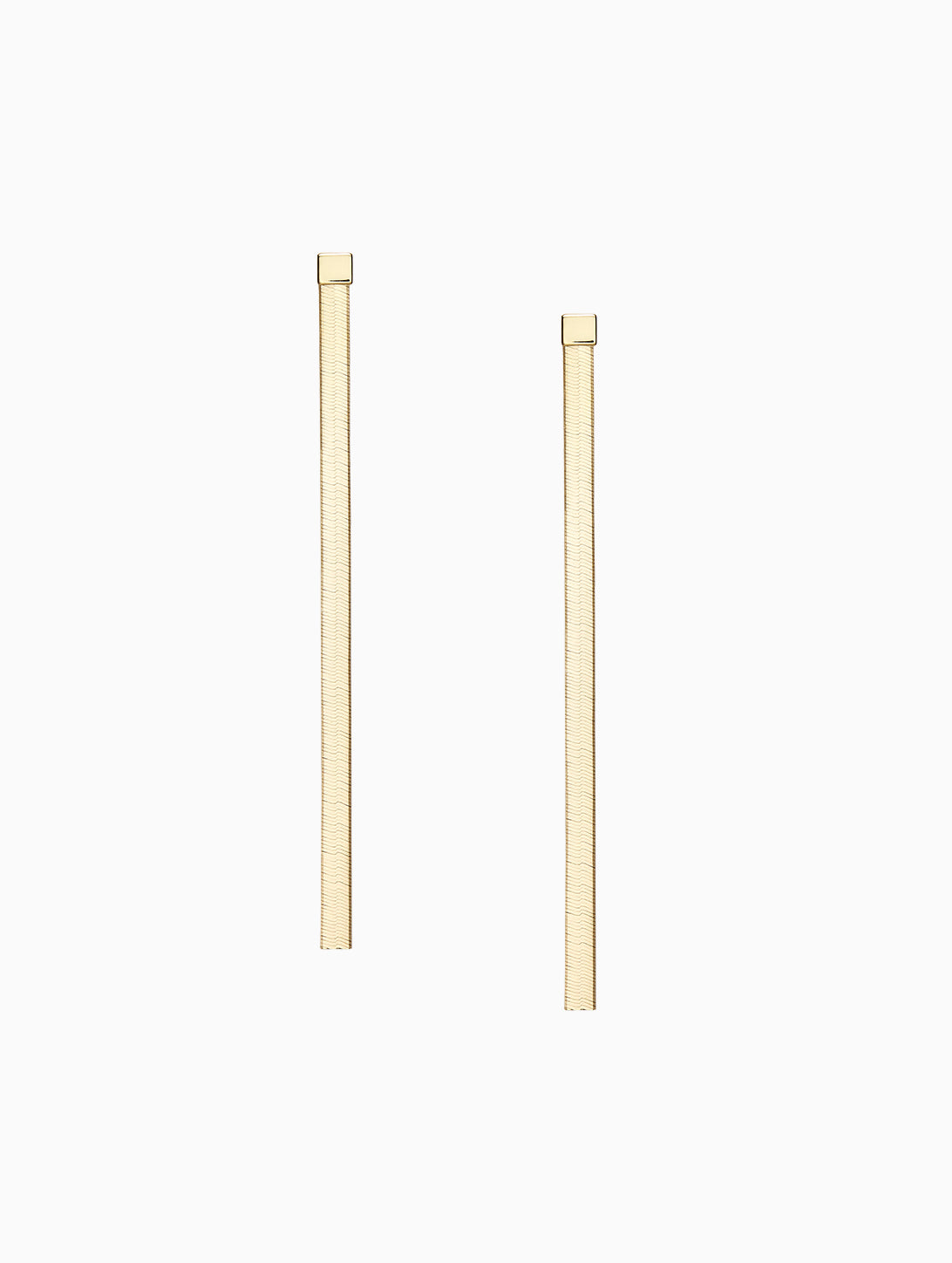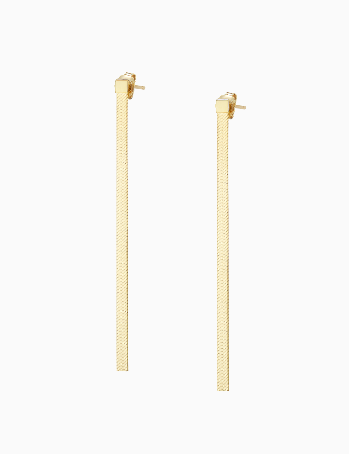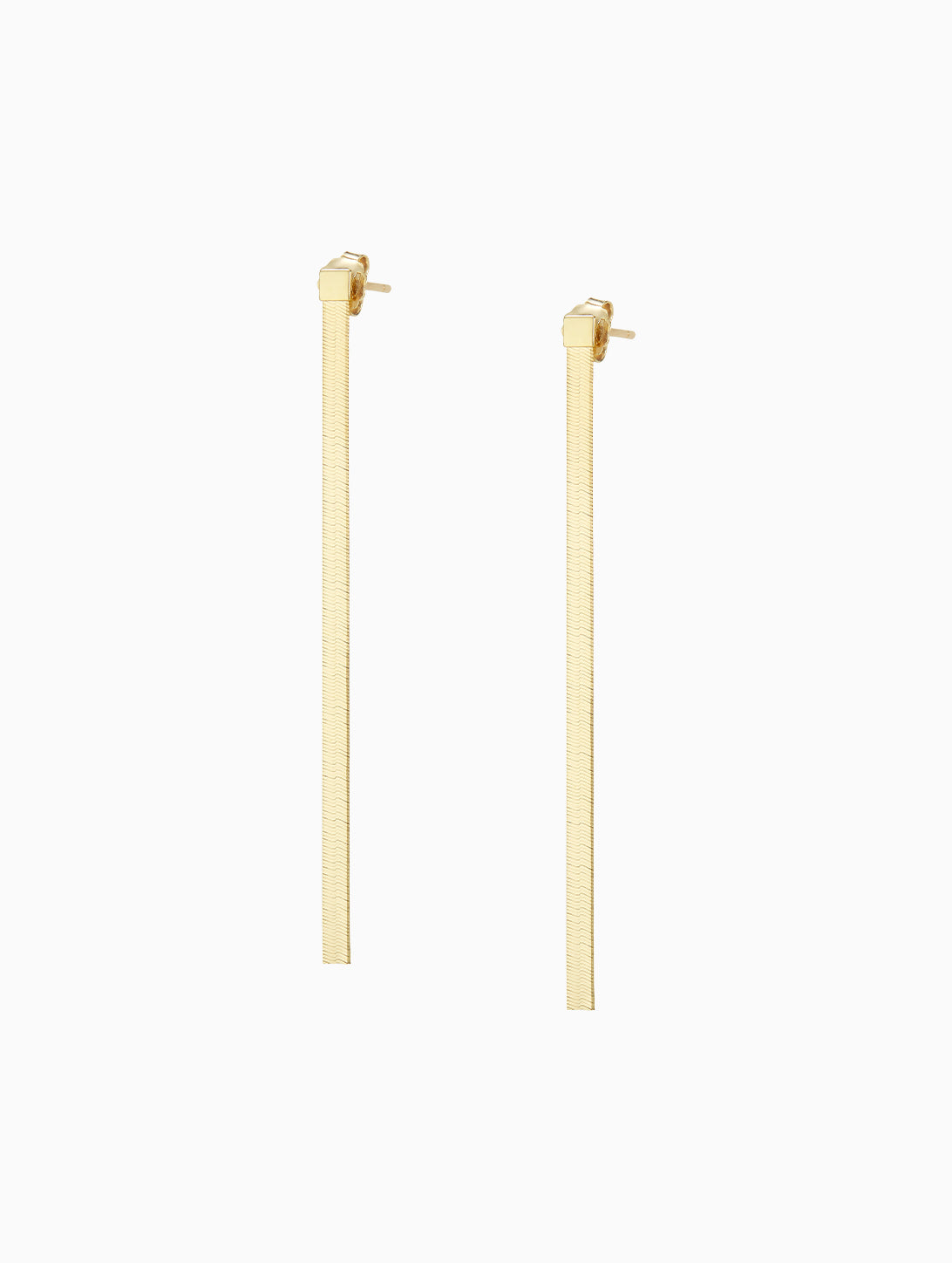 Orecchini con catena herringbone lucida della collezione Storytelling in oro 9kt. Gli orecchini sono dotati di chiusura con perno e farfalla (lunghezza totale 6,5 cm circa). Disponibili in oro giallo.