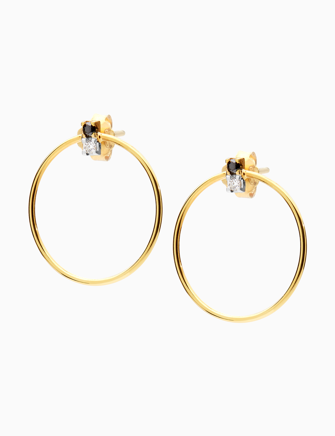 Orecchini a cerchio della collezione Black&White in oro 18kt, diamante bianco da 0.02 carati e diamante nero da 0.03 carati. Disponibili in oro giallo, rosa, o bianco.
