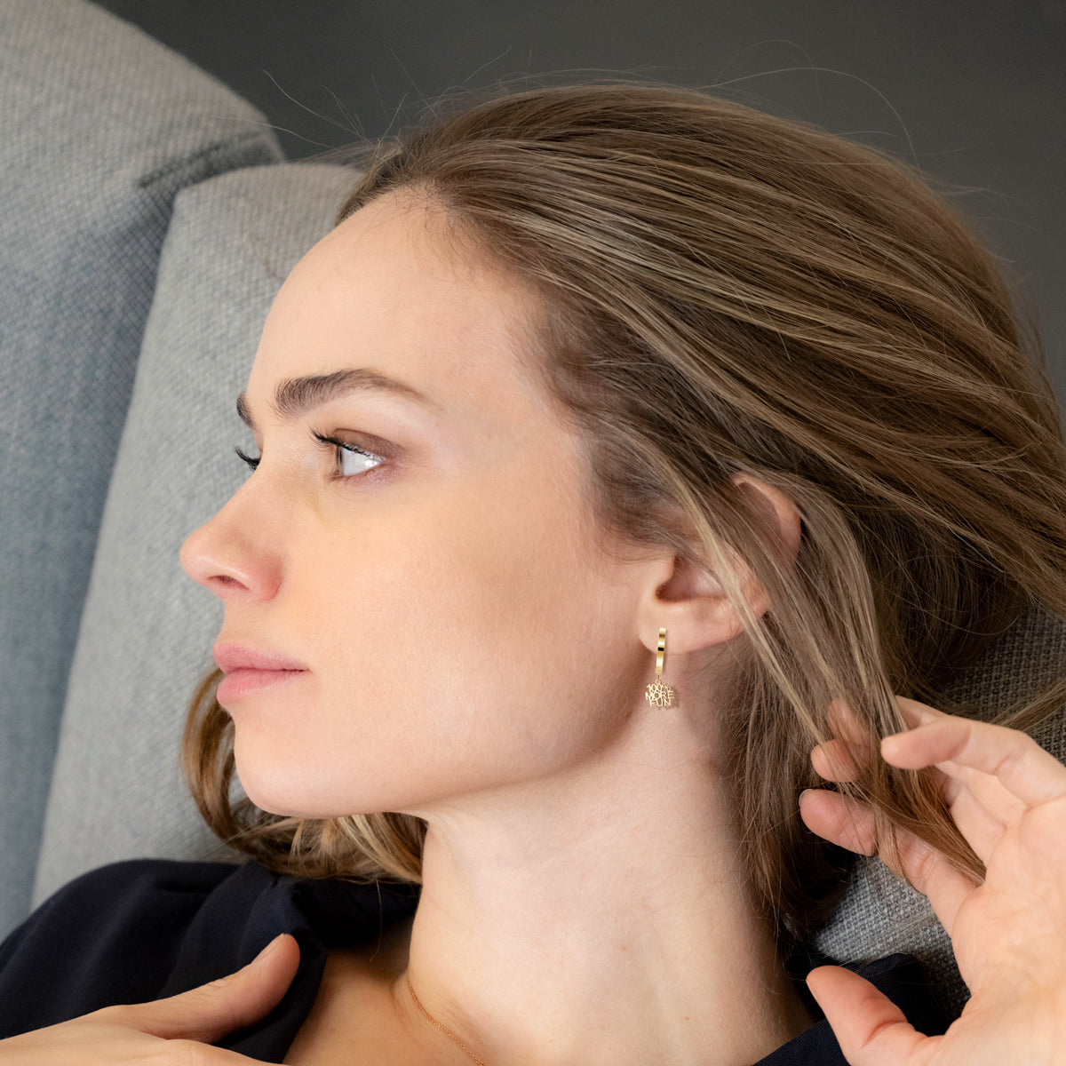 Orecchino modello creola a scatto in oro 18kt con scritta pendente “90% In Love”. Altezza complessiva del singolo orecchino: 2,3 cm circa. Disponibili in oro giallo. Venduto singolarmente.