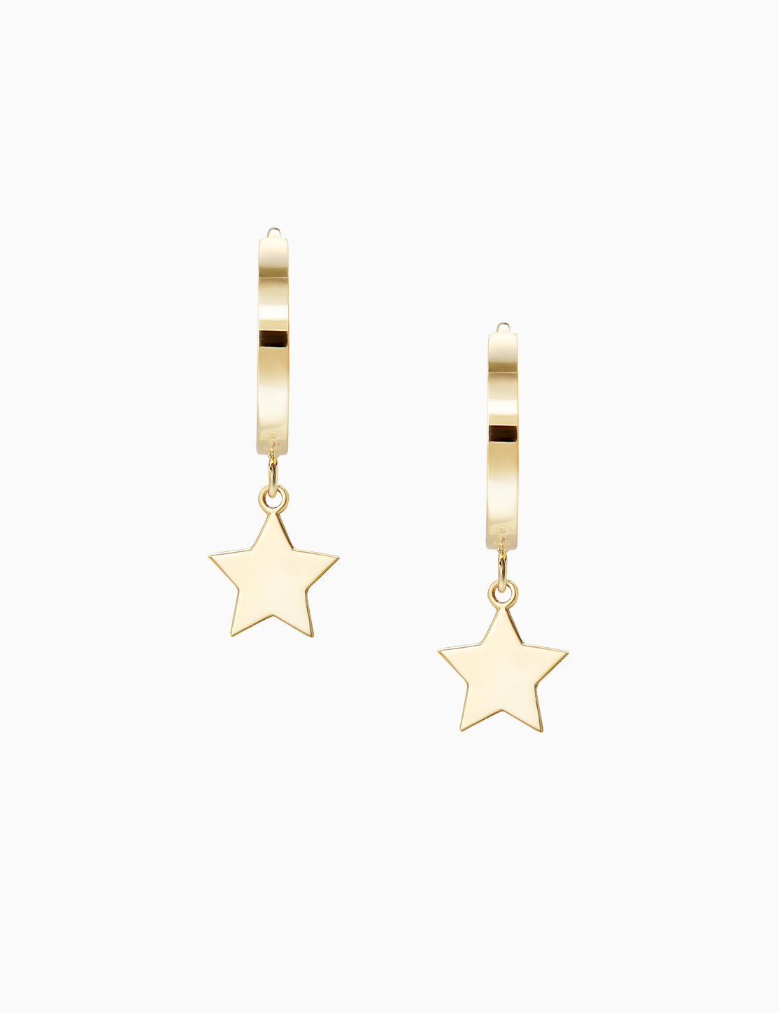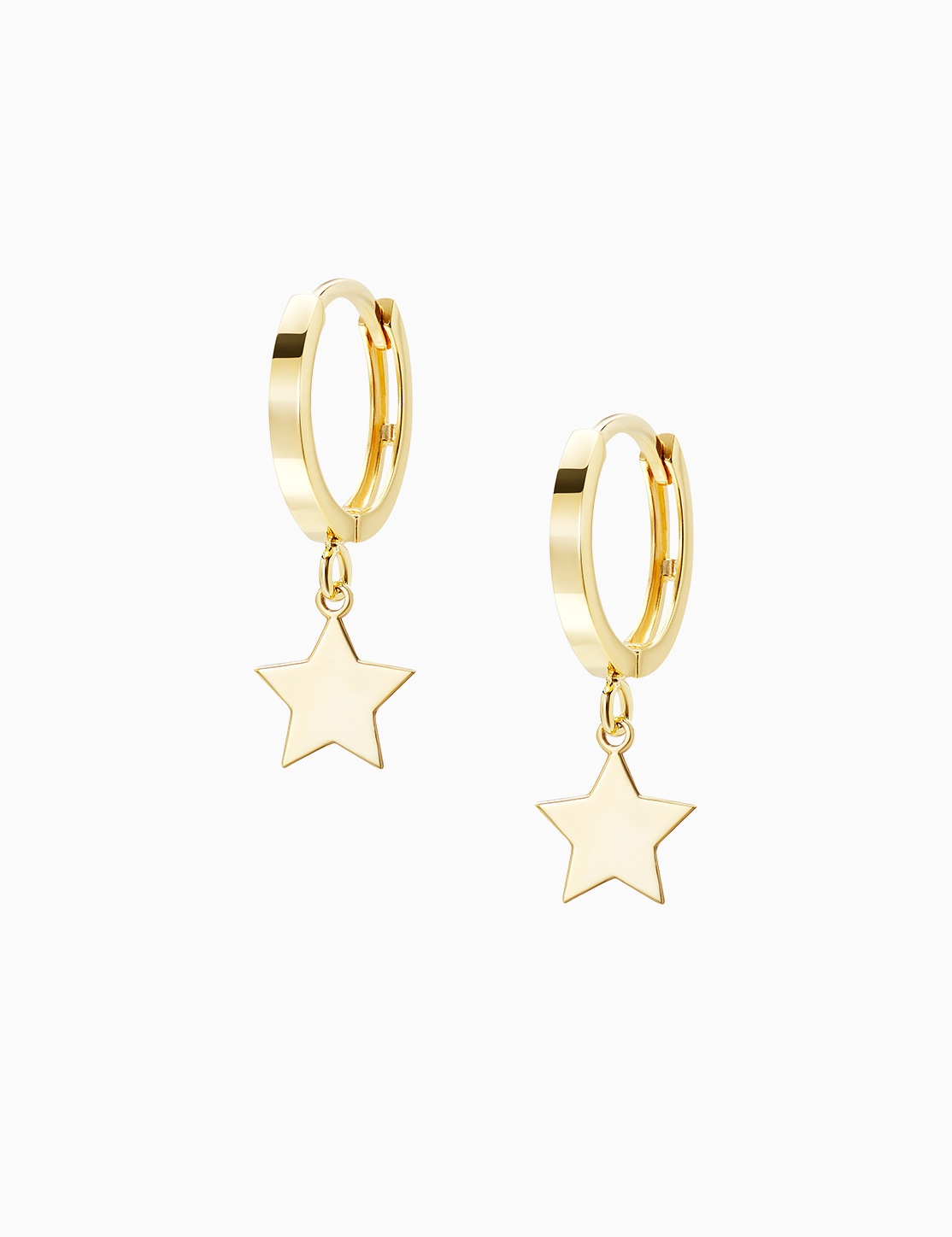 Orecchini modello creola a scatto in oro 18kt con stelle pendenti. Altezza complessiva del singolo orecchino: 2 cm circa. Disponibili in oro giallo, oro rosa, ed oro bianco. Venduto in coppia.