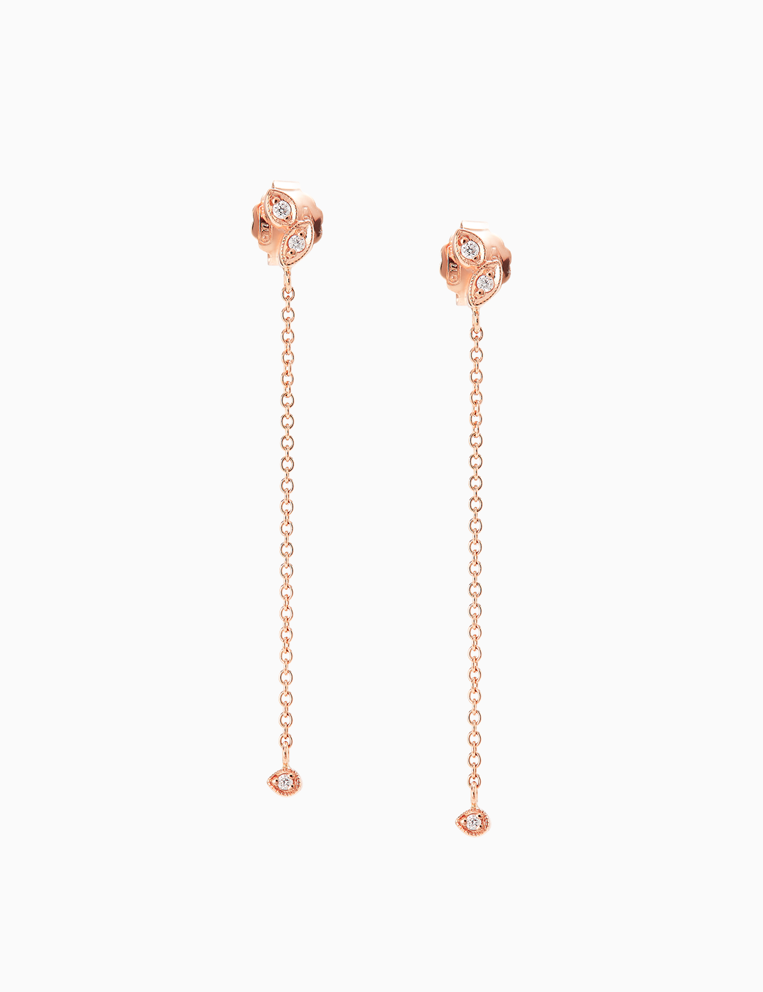 Orecchini in oro 18 carati della collezione Oui Diamonds con chiusura posteriore a perno, catena morbida e gocce in oro e diamanti bianchi da 0.04 carati totali. La lunghezza di ciascun orecchino è di circa 3 cm e può variare leggermente, essendo un articolo realizzato completamente a mano. Disponibili a scelta in oro giallo, rosa, o bianco.