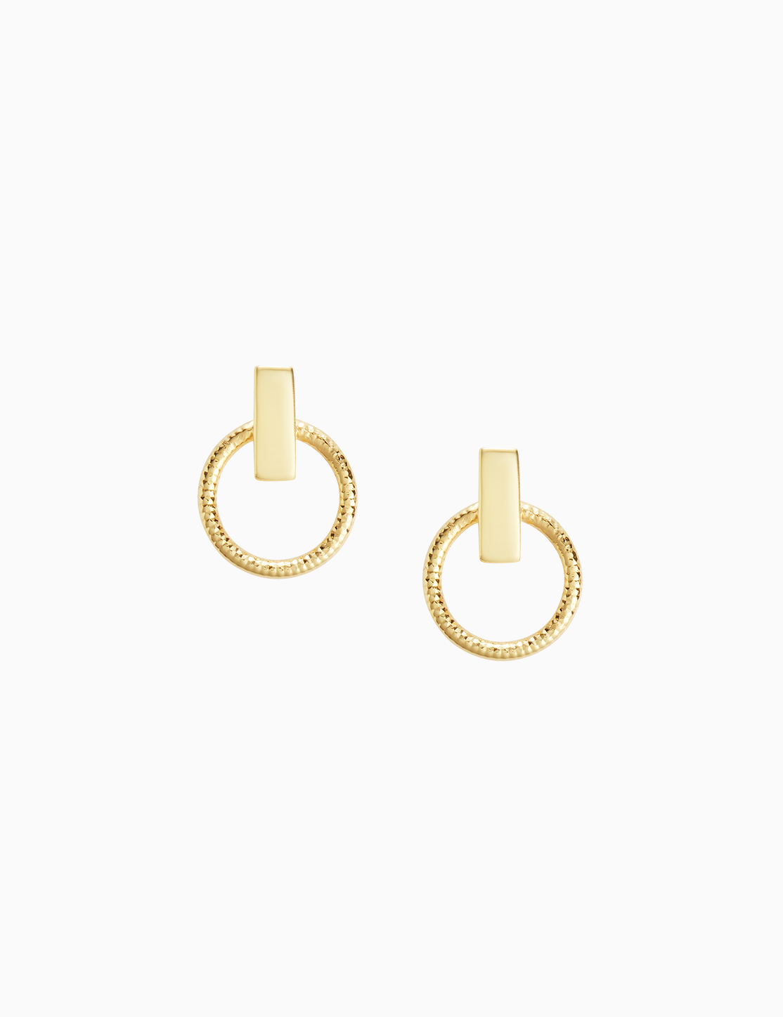 Orecchini taglia small della collezione Sparks con piccoli cerchi intrecciati realizzati con fili in oro 18kt lucidi e finemente diamantati. Chiusura con perno a lobo, larghezza 5 mm e altezza 8 mm circa. Disponibile in oro giallo.