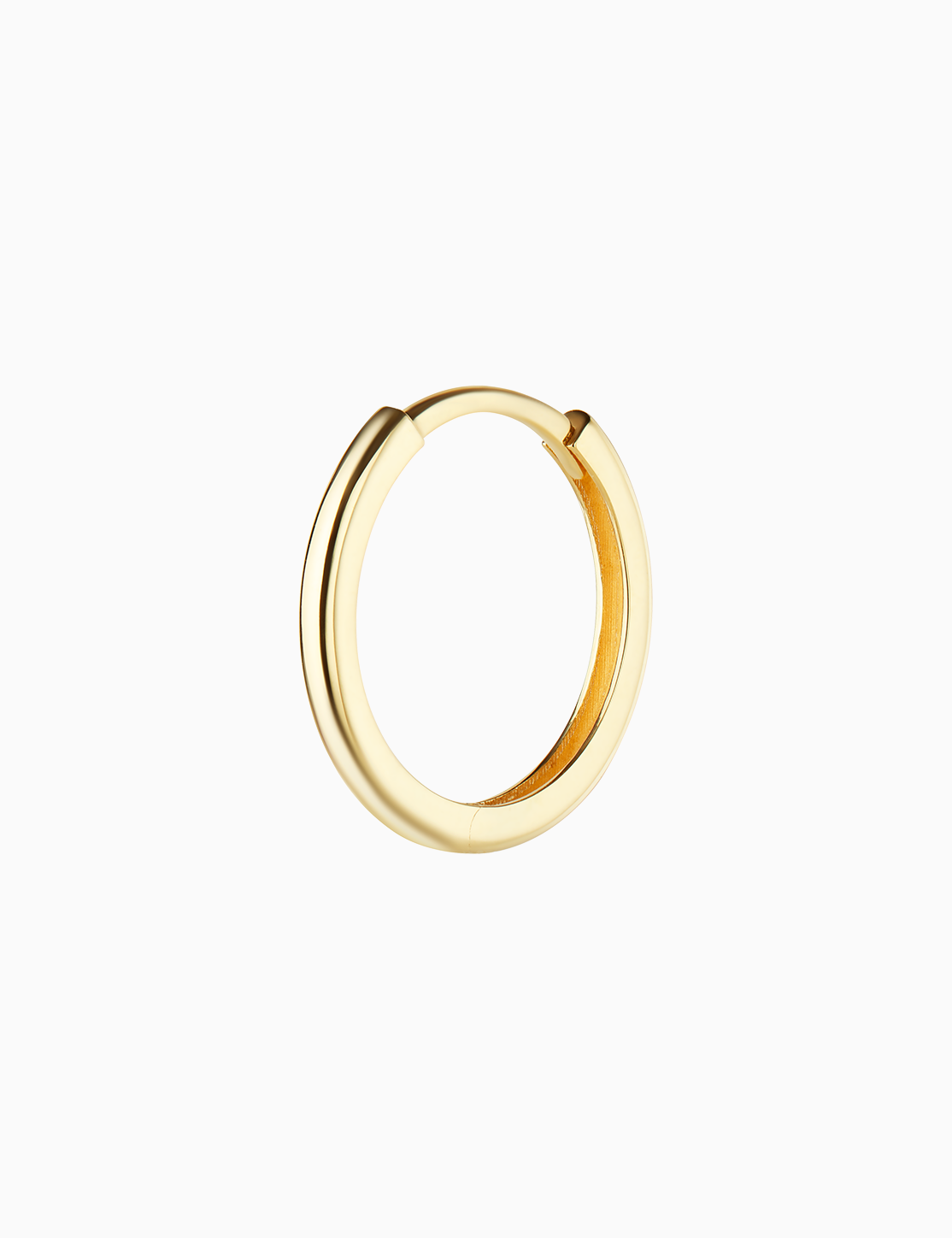 Orecchino in oro giallo 18kt con chiusura a scatto. L’orecchino misura 12 mm di diametro interno e 15 mm di diametro esterno. Disponibile in oro giallo 18kt. Venduto singolarmente.