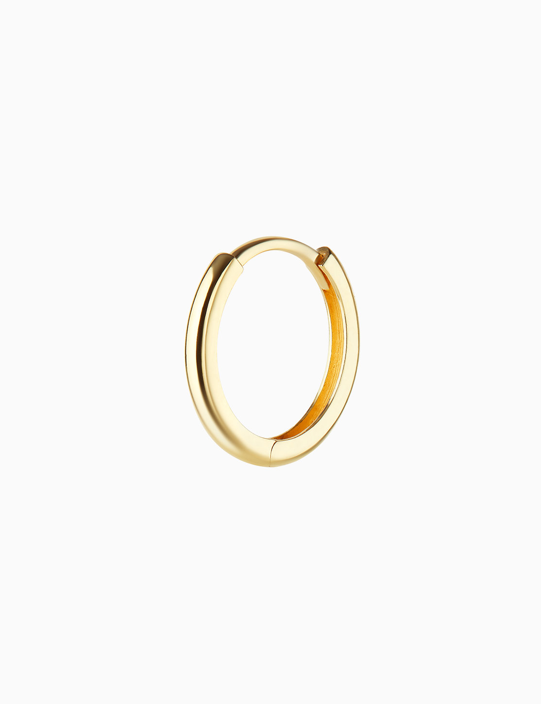Orecchino in oro giallo 18kt con chiusura a scatto. L’orecchino misura 10 mm di diametro interno e 13 mm di diametro esterno. Disponibile in oro giallo 18kt. Venduto singolarmente.